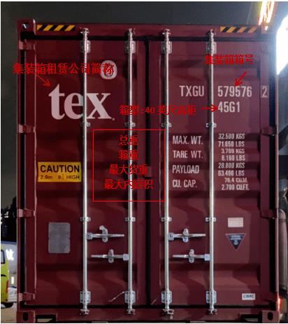 为了区分集装箱柜所属国家和地区就会有一些规定的代号,如中国用CN;美国用US。接下来为了让大家更直观的了解集装箱标识,从仓库装柜同事那里拿到了一张集装箱现拍照片,为大家简单的标明一下,按照下图示: