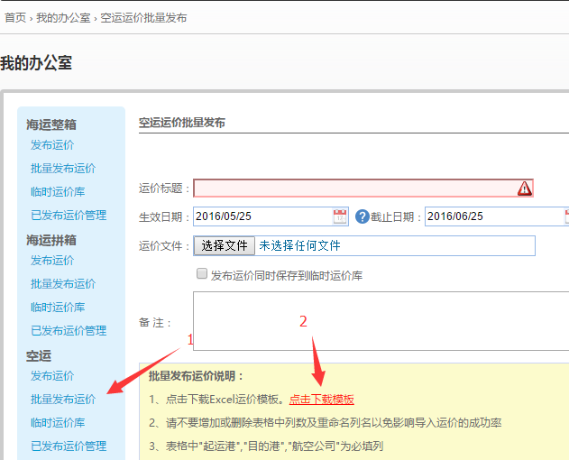 可以通过粘贴,录入,我们建议通过EXCEL文件上传运价,一个标题可以一次上传万条运价。操作流程如下: