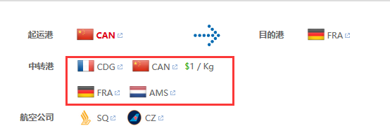 写2字码,如果中转有多个航空公司,可以写 SQ-CZ ,分隔符支持 “-” 和 “/” 、"," 。