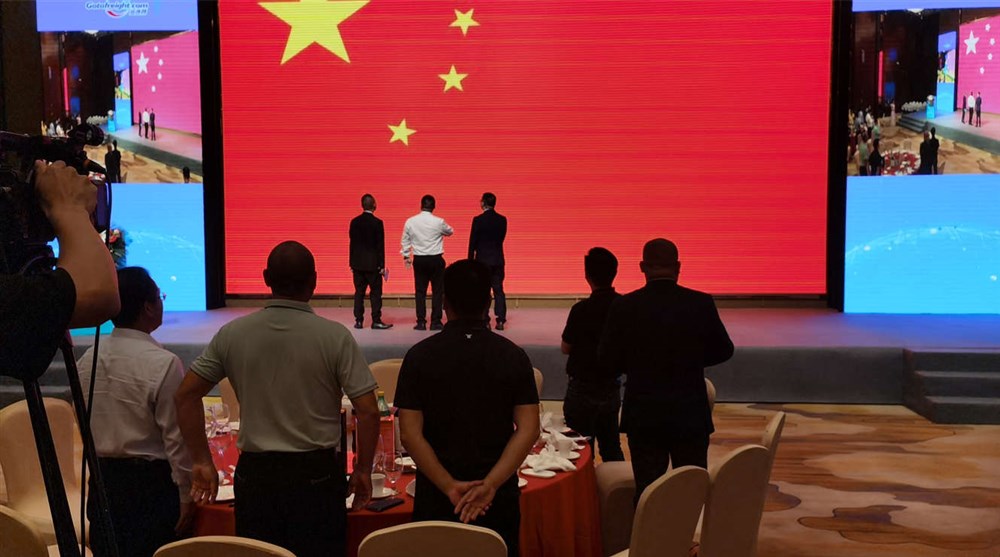 甲必丹张桅会长,穗空同盟邹伟强会长,柏威国际董事长王超军,深航协朱庆峰会长,深跨协王馨会长,深航协粤港澳委员会黄鹏主席,广东融汇进口供应链熊兵总经理,加迅南美航空彭小飞总经理,佳裕达供应链黄建红总经理上台亮相敬酒。