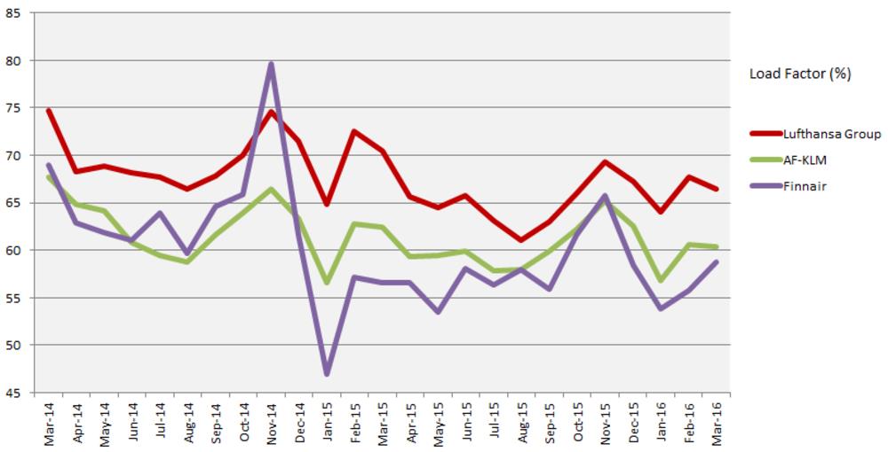 2016年3月,同比去年需求增加了6%,达到了70.7 RTKs 。同时,产能增加了2.2%,货运客座率与去年56.6%相比,达到了55.8%。