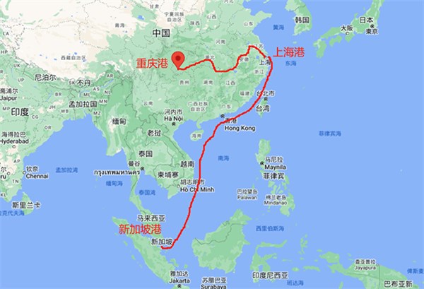 工厂装完货柜,拖车司机会当天把货柜拖回重庆港码头,同时当天发货人会将装箱清单发给我司操作安排报关工作。由于重庆港是内陆长江港口,无法通行超大船只,于是需要用小船驳船到上海港,然后再从上海港搭OOCL的大船直航新加坡