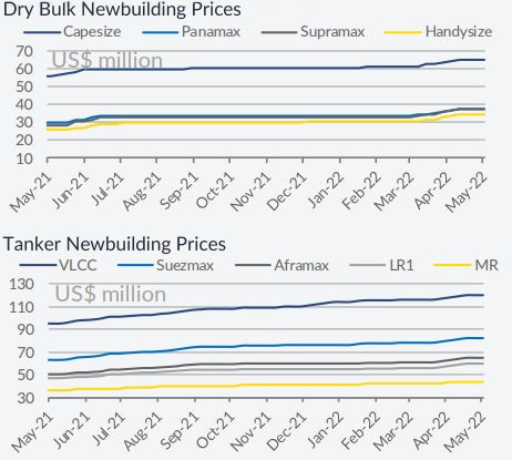随着中国的主要城市正在摆脱前几周的封锁,造船市场可能很快就会开始复苏。船舶经纪商 Allied 在其最新的周报中指出,“新造船市场很可能正处于缓慢转变的边缘,上海的封锁措施将于本周结束,许多人预测这一事件可能会引发强烈的 NB活动。再加上每两年在希腊 Posidonia 展会期间带来的积极季节性影响,6 月上半月可能会出现更多新订单。由于本周的活动以生动的基调进行,市场情绪已经出现积极。与上周不同的是,大部分曝光的订单来自中国船厂,此时液化天然气和干散货行业是主要的市场驱动力,而集装箱船单位的贡献又稳定了一周。价格仍然很高,这使得造船厂能够维持其利润率,尽管造船成本出现了增长。鉴于主要行业的整体货运市场表现仍然良好,当面临价格上涨和交货时间延长时,船东方面目前几乎没有威慑力。”