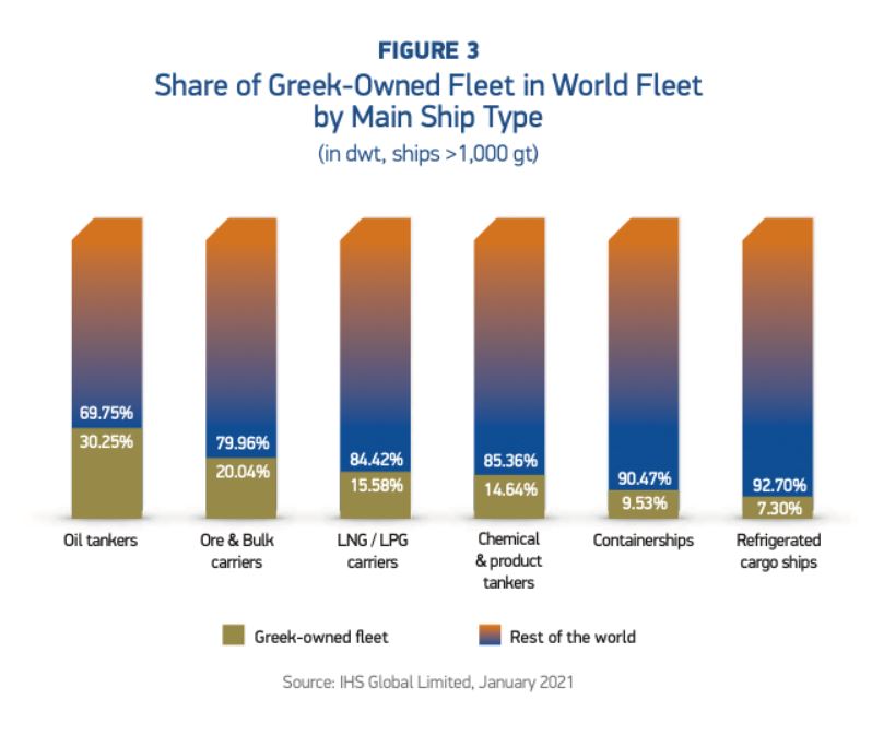 希腊拥有的船队是全球商业的重要组成部分。农业和森林产品、石油和石油产品、天然气、化工产品、铁和其他矿石、煤炭和化肥是希腊拥有的船队携带的必需品。