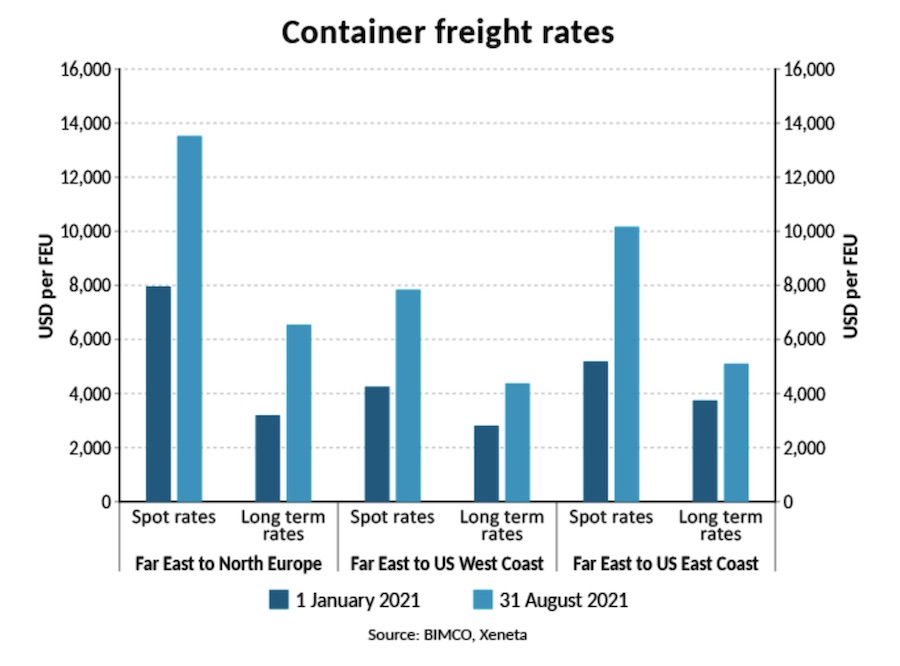 本周来自 BIMCO 的一份新的集装箱运输报告指出:“多年的低运费导致承运人严格削减成本,使他们处于有利位置,现在市场已经转向,可以实现利润最大化。展望未来,事实证明,他们善于在谈判桌上利用自己的优势,以当今更高的运费与托运人签订长期合同。”