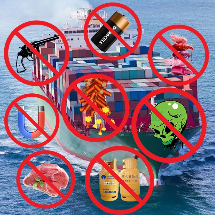 -- 关于哪些物品是违禁品或是管制物品, 依照出口国(中国) 和货物运输目的国(新加坡)的法律来规定。