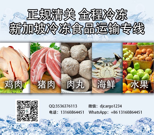 新加坡客户在新加坡想吃中国的冷冻食品,在网上看到我发布的运输冷冻食品的广告贴,联系到我,让我帮他运输冷冻食品的渠道从中国运输到新加坡给他。