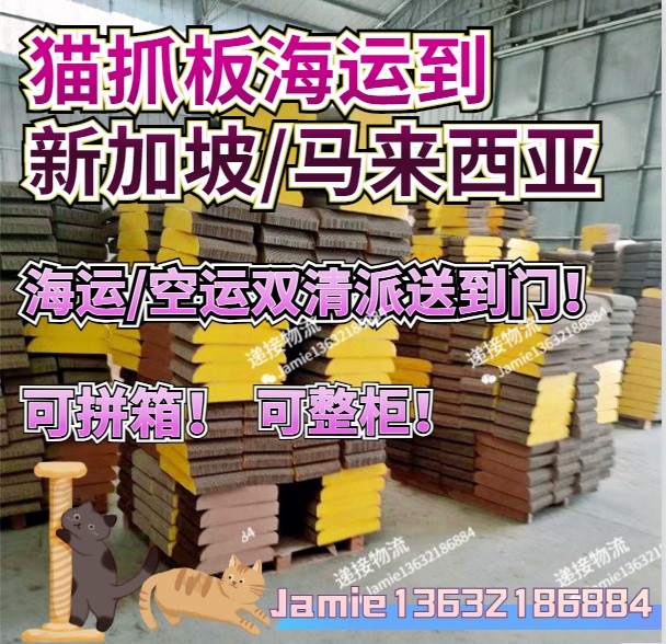 广州递接国际货运代理有限公司专业承接猫抓板/猫砂/猫粮海运空运到新加坡,猫抓板/猫砂/猫粮海运运输到新加坡,双清到门服务。中国广州到新加坡海运散货拼箱到门,整柜到门,小包裹到门,时效快,价格便宜,海运空运首选递接物流。海运时效12-15天左右送到新加坡家中。新加坡清关派送有自己的车队。