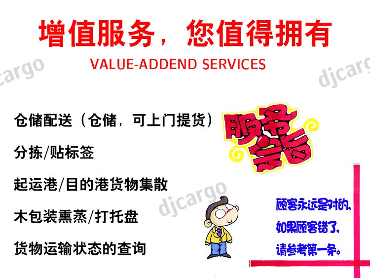 让客户都可以轻松运货、搬家、做外贸。我们提供从上门提货到派送到门的一条龙服务。不需要您操心国内商检、出口报关、海运、目的国清关、派送的任何事情。从十来公斤的海运小包,到几个方几十个立方的海运散货拼箱以及整柜运输。我司都有相应的解决方案。