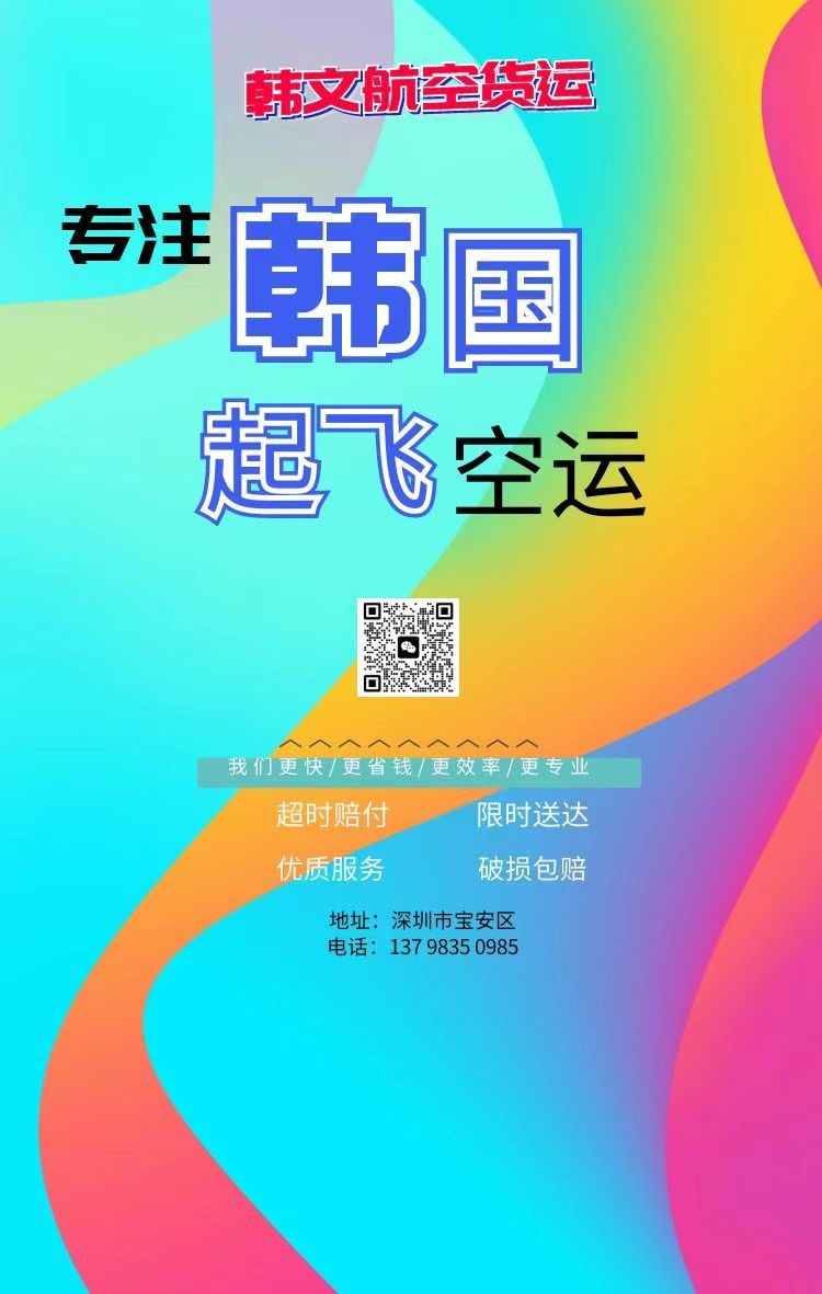 深圳韩文航空货运代理有限公司是由深圳仓直接发货到韩国的自有物流,有空运和海运,空运1日达,海运1-3天可到达,主营业务是海空联运,也就是韩国起飞到欧美的业务为主