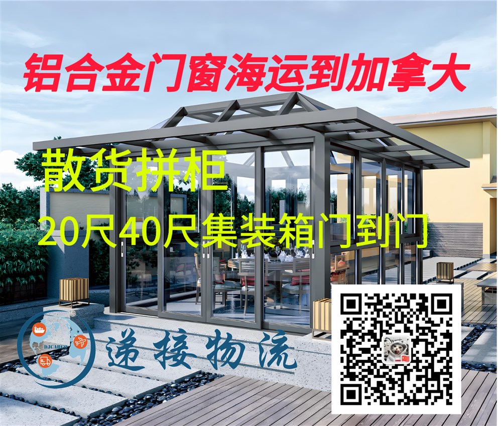 整柜铝合金门窗海运到加拿大可以从广州递接仓库集运, 也可以从国内各大城市安排拖车去工厂装柜,然后从就近港口发货,广州,深圳,佛山,宁波,上海,青岛,天津海运20GP/40GP/20尺/40尺集装箱整柜铝合金门窗到加拿大。